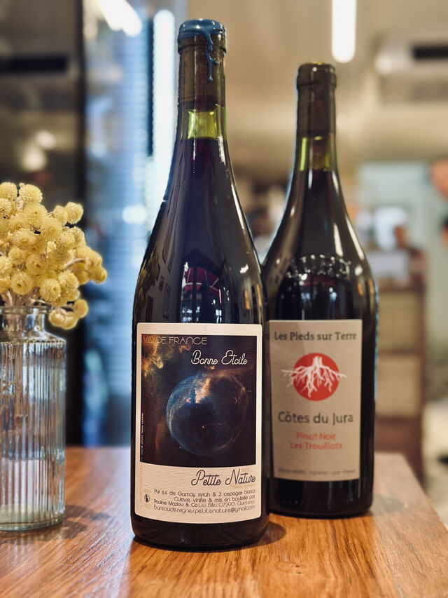 Passionnés par les belles bouteilles, nous mettons également à l’honneur une sélection de vins natures : des cuvées vivantes, expressives, choisies pour accompagner nos plats avec justesse et spontanéité.